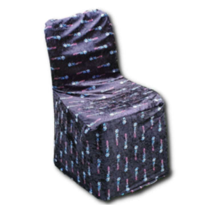 Velvet chair cover set with full multi-colour branding and tie-back included.
