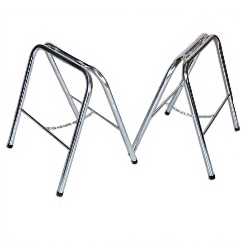 This set of coffin stands is built from mild steel with a zinc-plated finish for durability and corrosion resistance. Designed to hold coffins securely during services or transport preparation.