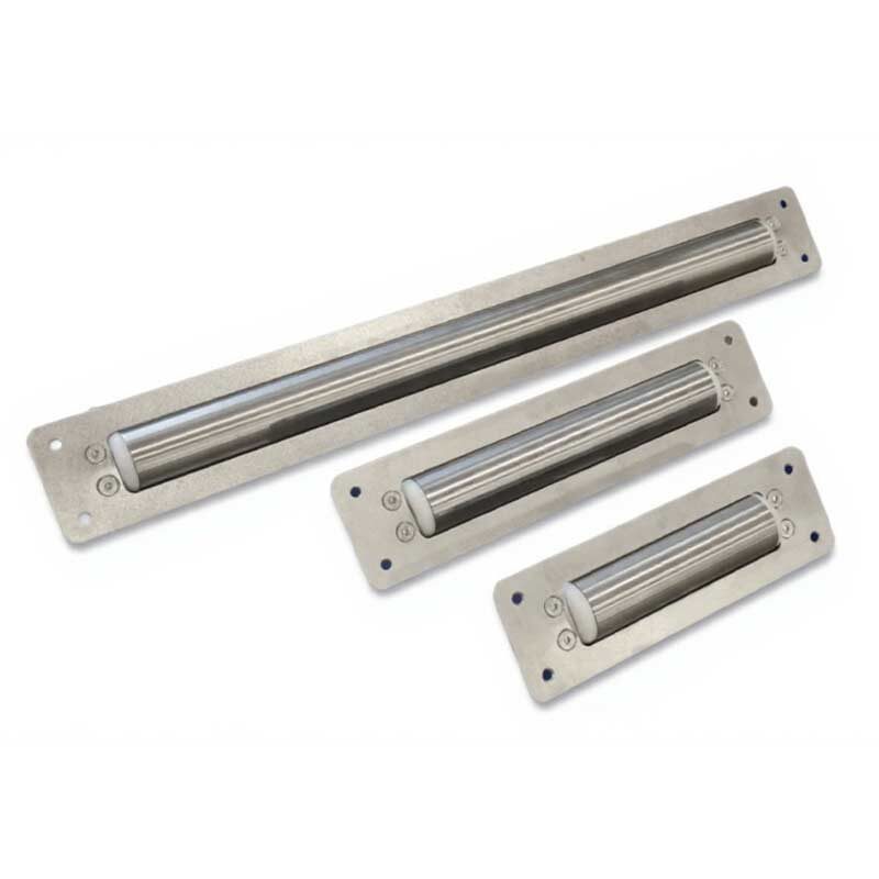 2mm stainless steel coffin rollers available in compact, regular, and extra-length sizes.
