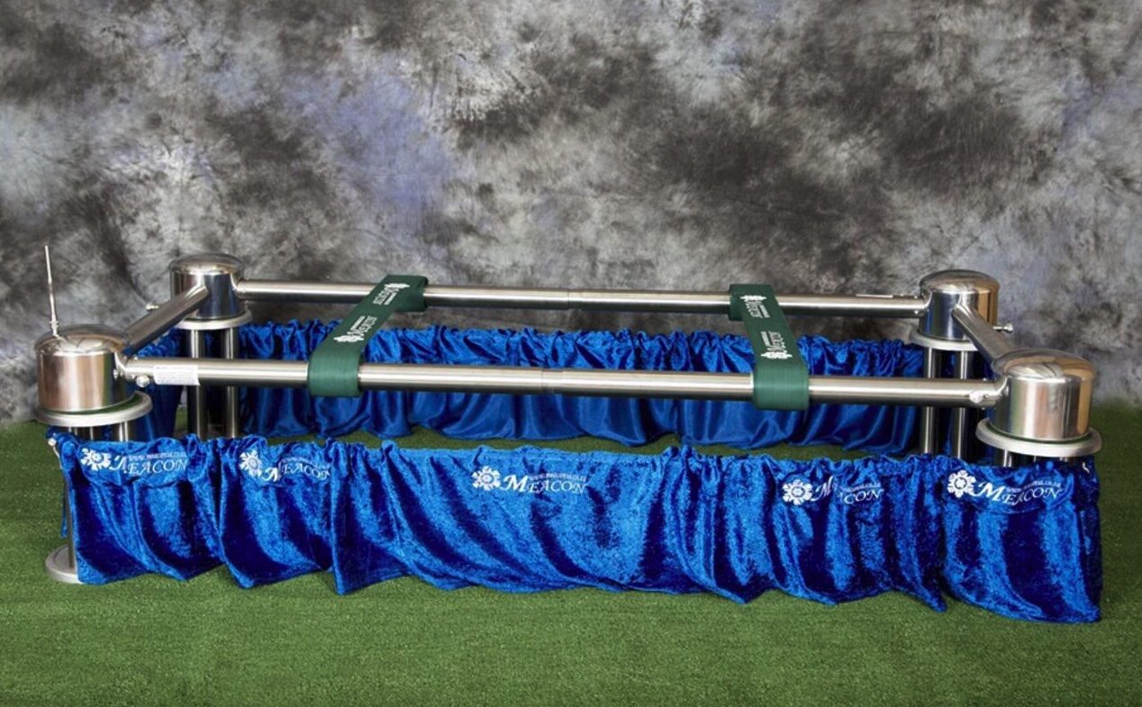 The Automatic Lowering Device with High Stands from Meacon is designed for funeral directors who need a premium presentation with maximum stability. Crafted from polished stainless steel and cast aluminium components, this unit offers long-lasting durability, corrosion resistance, and a professional appearance at graveside services.