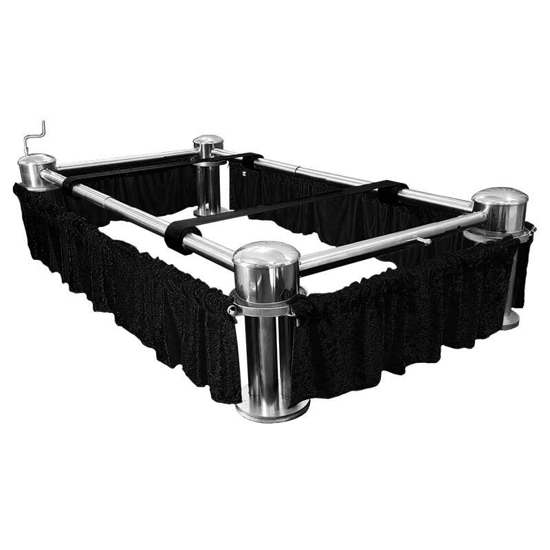 High-quality automatic lowering device with durable high stands for elevated presentation. Includes stainless-steel and aluminium build, complimentary belt and drape set, with optional branding available.