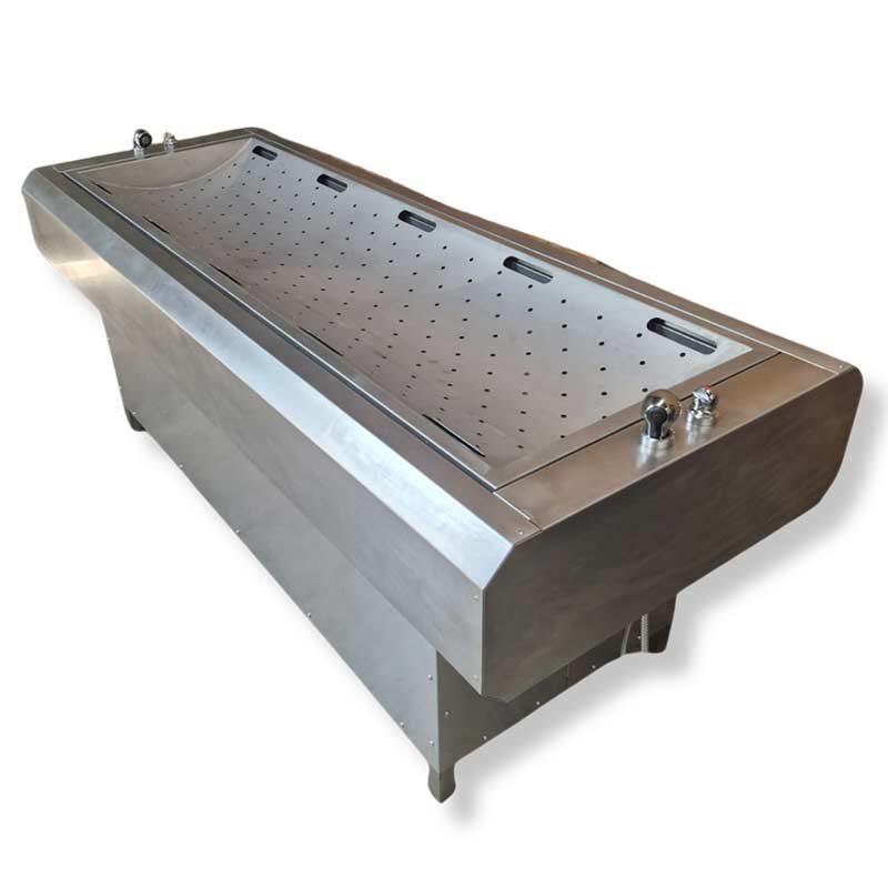 The Medical Mortuary Bath is designed for hygienic, efficient body washing and preparation in hospitals, funeral homes, and pathology labs. Built from high-quality stainless steel, it features a perforated work surface that allows for quick drainage, reducing water buildup during use. Dual taps are fitted on both ends for flexibility, while the curved basin design makes cleaning and body handling easier. Durable, easy to sanitise, and purpose-built for professional use, this unit ensures a safe and practical solution for mortuary environments.